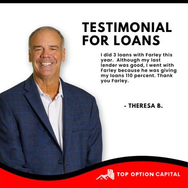 Top Option Capital, LLC (“Lender”) and its affiliates (collectively, “Top Option Capital”) originate business purpose loans. Loans are intended strictly for business purposes and are not to be used for personal, family, or household purposes. This communication does not constitute a commitment to lend. All loan applications are subject to Lender’s underwriting requirements and satisfactory completion of due diligence. Loan terms, including amounts, interest rates, and fees, are provided for informational purposes only and are subject to change without notice at the sole discretion of Lender until a definitive agreement is fully executed by Lender and Borrower (and any other required parties). Additional conditions may apply.